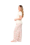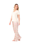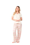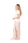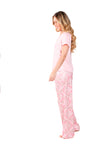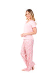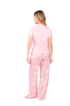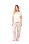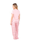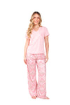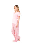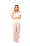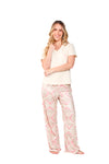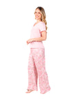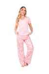 Blusa unicolor manga corta, escote "v", bolsillo punto corazón con estampado efecto puff; pantalón elaborado en tejido de punto efecto satín, de tacto frío y extra suave con estampación digital.