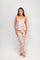 Nuestra pijama de pantalón y manga tirantes combina el brillo sutil de la tela satinada con la flexibilidad perfecta para moverte con libertad, sintiéndote fresca y sofisticada.
