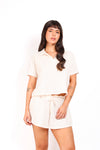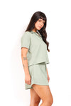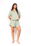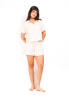 Nuestra pijama de short y blusa manga corta envuelve tu cuerpo con una suavidad única y una caída elegante que acompaña cada movimiento. Perfecta para esos momentos de pausa donde la comodidad se encuentra con el estilo.