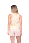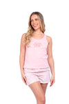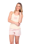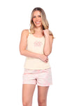Blusa unicolor manga sisa con estampado localizado; short elaborado en tela con fibras de algodón, de tacto suave con estampación digital