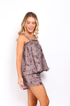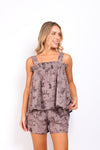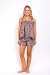 Nuestra pijama de short y blusa tirantes combina la ligereza que necesitas con detalles que marcan la diferencia. La blusa te brinda un estilo sutil y femenino, mientras el short en microfibra liviana con tacto suave se ajusta con delicadeza, como una segunda piel. Es ese equilibrio perfecto entre frescura, estilo y confort.
