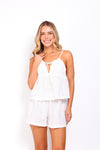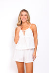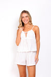 Nuestra pijama de short y blusa tirantes combina la ligereza que necesitas con detalles que marcan la diferencia. La blusa te brinda un estilo sutil y femenino, mientras el short en microfibra liviana con tacto suave se ajusta con delicadeza, como una segunda piel. Es ese equilibrio perfecto entre frescura, estilo y confort.