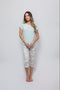 Nuestra pijama de capri y manga corta, elaborada en una tela suave con una textura ligera y una caída elegante, ofrece una sensación única de comodidad con un look sutilmente sofisticado.