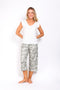Set elaborado en mezcla de algodón, poliéster y spandex para una sensación fresca y flexible. La blusa presenta un estampado localizado encantador, mientras el capri, confeccionado en microfibra liviana de tacto suave, se completa con bolsillos funcionales y un estampado que le da un toque especial.