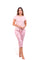 Con un diseño práctico y femenino, esta pijama combina una blusa unicolor de cuello redondo con un capri suave y liviano que se adapta a tu ritmo. El estampado sutil y los bolsillos funcionales suman estilo y comodidad, haciendo de este set tu aliado favorito para descansar con libertad y frescura.