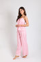 Conjunto multiusos elaborado en burda liviana con estampación digital de tacto suave, blusa maga corta con abertura en costados, pantalón con bolsillos funcionales.