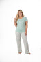 blusa unicolor manga corta cuello "v" con estampado localizado en punto corazón; short en tela piel de durazno con estampación digital de tacto extra suave.