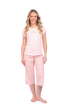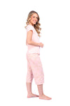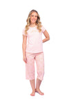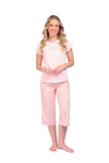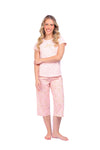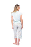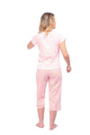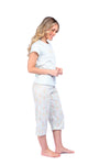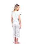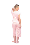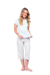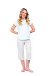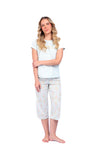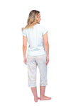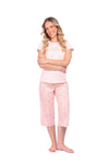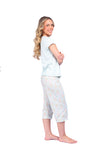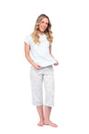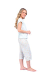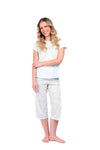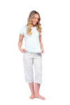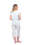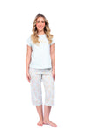 Diseñada para brindarte comodidad y frescura, esta pijama combina suavidad y estilo en cada detalle. La blusa unicolor equilibra perfectamente el diseño del capri estampado, creando un conjunto ideal para descansar, dormir o disfrutar de tus momentos en casa con ligereza y confort. Su tela transpirable te acompaña suavemente durante todo el día o la noche.
