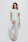 Blusa unicolor manga corta con estampado localizado, pantalón en tela piel de durazno con estampación digital de tacto extra suave.