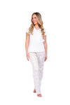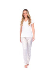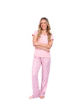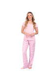 Diseñada para brindarte una experiencia de descanso suave, cómoda y llena de encanto, esta pijama combina materiales delicados con un diseño que resalta la feminidad. Su blusa fresca y flexible se adapta perfectamente al cuerpo, mientras que el pantalón ofrece una sensación aterciopelada que te acompaña en cada movimiento. Ideal para dormir o disfrutar de momentos de relax en casa sintiéndote cómoda, ligera y especial.
