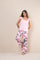 ¡Viste con estilo y comodidad con nuestro conjunto de pijama de mujer! La blusa cuenta con cargaderas anchas y un hermoso detalle de bolero, mientras que el pantalón está hecho de un suave tejido de punto satinado con estampado digital. ¡Disfruta de un descanso fresco y confortable en nuestras pijamas!