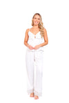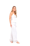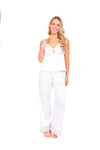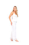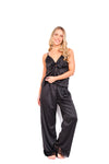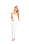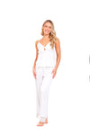 Nuestra pijama está diseñada para envolver tu cuerpo con una sensación de comodidad absoluta y libertad de movimiento. El pantalón ofrece un ajuste relajado, mientras que la blusa de tirantes aporta un estilo fresco y femenino, ideal para climas cálidos o para sentirte ligera en casa. Perfecta para dormir, descansar o relajarte con total comodidad, sin dejar de verte auténtica y estilizada.