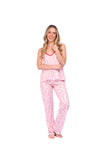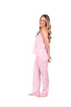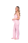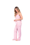 Nuestra pijama está diseñada para envolver tu cuerpo con una sensación de comodidad absoluta y libertad de movimiento. El pantalón ofrece un ajuste relajado, mientras que la blusa de tirantes aporta un estilo fresco y femenino, ideal para climas cálidos o para sentirte ligera en casa. Perfecta para dormir, descansar o relajarte con total comodidad, sin dejar de verte auténtica y estilizada.