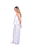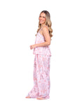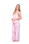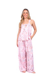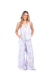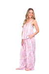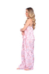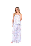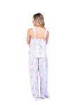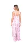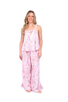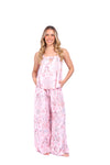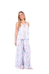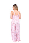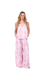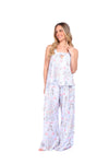 Nuestra pijama está diseñada para envolver tu cuerpo con una sensación de comodidad absoluta y libertad de movimiento. El pantalón ofrece un ajuste relajado, mientras que la blusa de tirantes aporta un estilo fresco y femenino, ideal para climas cálidos o para sentirte ligera en casa. Perfecta para dormir, descansar o relajarte con total comodidad, sin dejar de verte auténtica y estilizada.