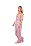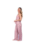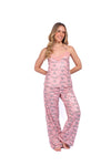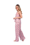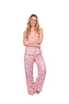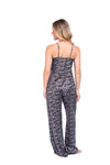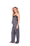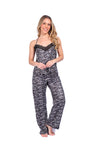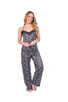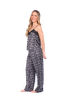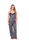 Set de pantalón elaborado en tejido de punto, efecto satín, de tacto frío y extra suave con estampación digital. Blusa de cargaderas graduables y silueta amplia con detalle de encaje en escote