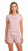 Blusa unicolor manga corta con estampado localizado; short elaborado en tela con fibras de algodón, de tacto suave con estampación digital