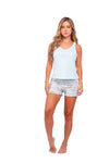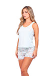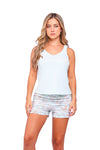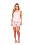 Blusa unicolor manga sisa con estampado localizado punto corazón; short elaborado en tela con fibras de algodón, de tacto suave con estampación digital