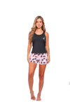 Blusa unicolor manga sisa con estampado localizado en punto corazón; short en tela piel de durazno con estampación digital de tacto extra suave.