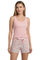 Blusa unicolor manga sisa con estampado localizado; short elaborado en tela con fibras de algodón, de tacto suave con estampación digital. Cinta decorativa en cintura de short.