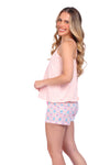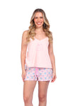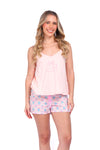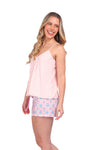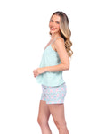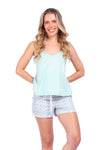 Este conjunto está pensado para acompañarte en tus momentos de descanso con una sensación de ligereza, suavidad y libertad de movimiento. La blusa de silueta amplia se adapta cómodamente a tu cuerpo, mientras que el short ofrece frescura y un ajuste confortable. Ideal para dormir o relajarte en casa sintiéndote cómoda, fresca y naturalmente bella.