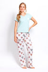 Set elaborado en tejido de punto suave con mezcla de algodón y poliéster. Su textura ligera y flexible ofrece una silueta relajada y una sensación de frescura durante toda la noche.