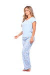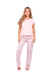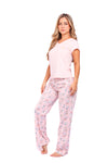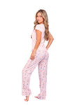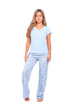 Blusa unicolor manga corta cuello "v" con estampado localizado punto corazón; pantalón elaborado en tela con fibras de algodón, de tacto suave con estampación digital