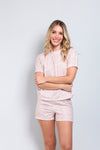 Nuestra pijama de short y blusa manga corta envuelve tu cuerpo con una suavidad única y una caída elegante que acompaña cada movimiento. Perfecta para esos momentos de pausa donde la comodidad se encuentra con el estilo.