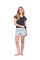 Blusa unicolor manga corta, cuello "v" con estampado localizado punto corazón; short elaborado en tela con fibras de algodón, de tacto suave con estampación digital
