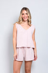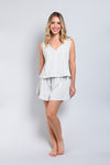 Nuestra pijama de short y blusa manga corta envuelve tu cuerpo con una suavidad única y una caída elegante que acompaña cada movimiento. Perfecta para esos momentos de pausa donde la comodidad se encuentra con el estilo.