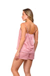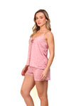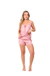 Set de short elaborado en tejido de punto, efecto satin, de tacto frío y extra suave con estampación digital. Blusa de cargaderas graduables y silueta amplia, con jareta funcional en escote.