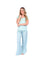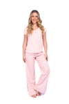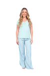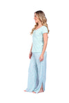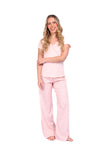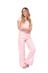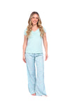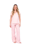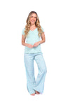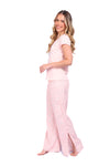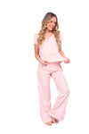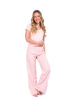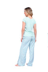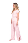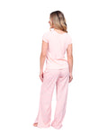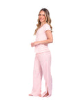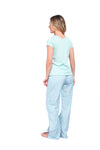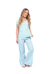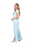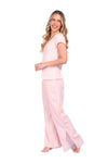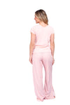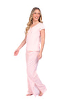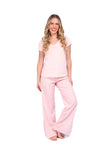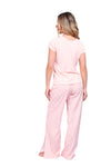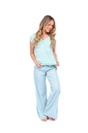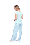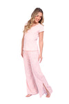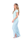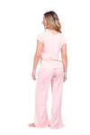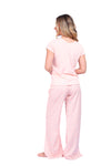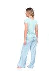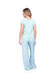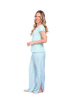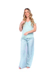 Blusa unicolor manga corta, escote "v"; pantalón elaborado en tejido de punto, efecto satín, de tacto frío y extra suave con estampación digital.