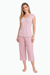 Blusa unicolor manga corta con bolsillo; pantalón elaborado en tejido plano liviano con elongación y estampación digital de tacto suave