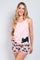 Set elaborado con una mezcla suave de poliéster, algodón y spandex para una experiencia ligera, flexible y envolvente. La textura del short ofrece una sensación sedosa ideal para climas cálidos, y su diseño estampado suma un toque moderno y divertido.